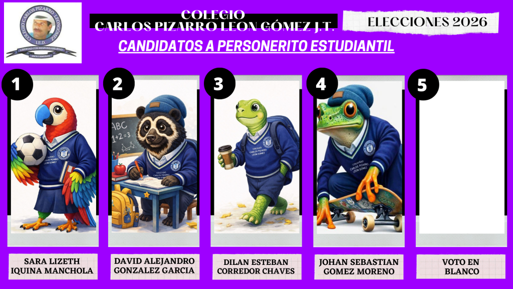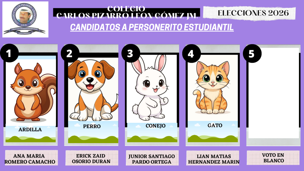 Los más pequeños, estudiantes de ciclo inicial (jardin, prejardin, transición) y los grados primero, segundo y tercero, tendrán a sus candidatos a personerito, representados en un animal representativo.